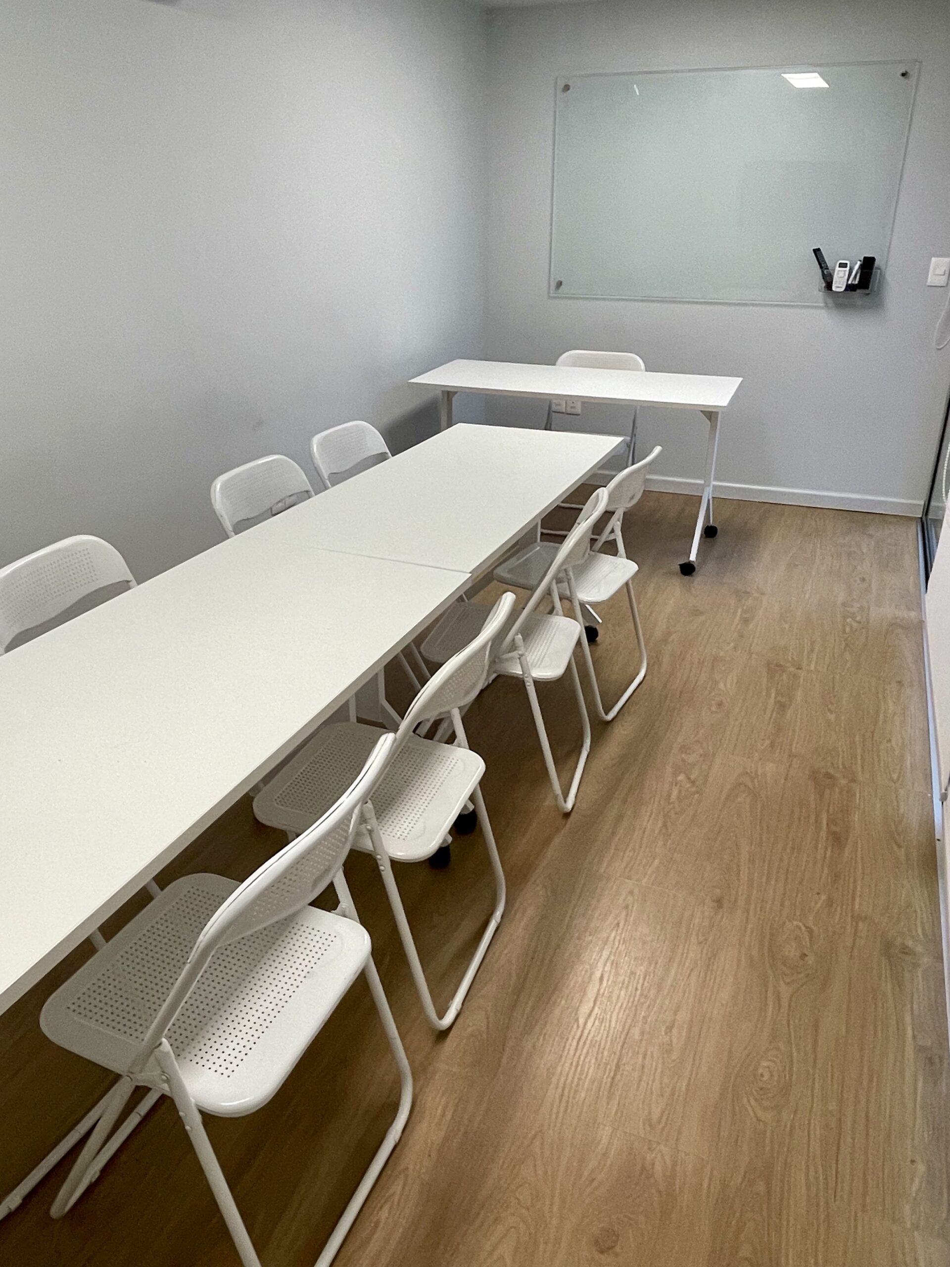 Box 08 Dimensiones 6,0m x 2,40m Capacidad: 10 Personas Wifi Pizzara de Vidrio UYU 500/ USD 13, por hora. Ambiente Climatizado Haz Tu Reserva por hora Consulta por alquiler mensual